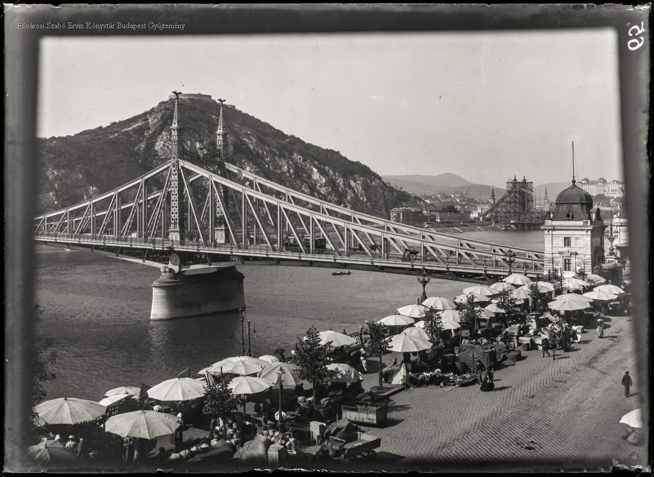 [A Ferenc József/Szabadság híd a Fővámház épületének egyik emeleti ablakából] [Ferenc József/Szabadság (Liberty) Bridge from a window of the Fővámház (Main Customs House)]