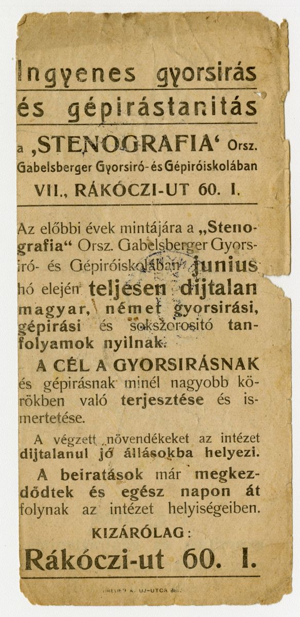 Cégnév:Országos Gabelsberger Gyorsíró- és Gépíróiskola