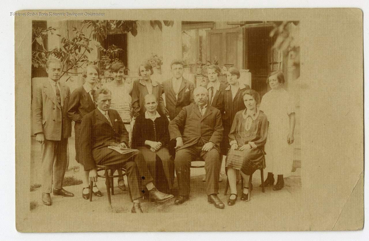 család, férfi, nő, udvar, képes levelezőlap, külső felvétel, családi kép, 1920-as évek