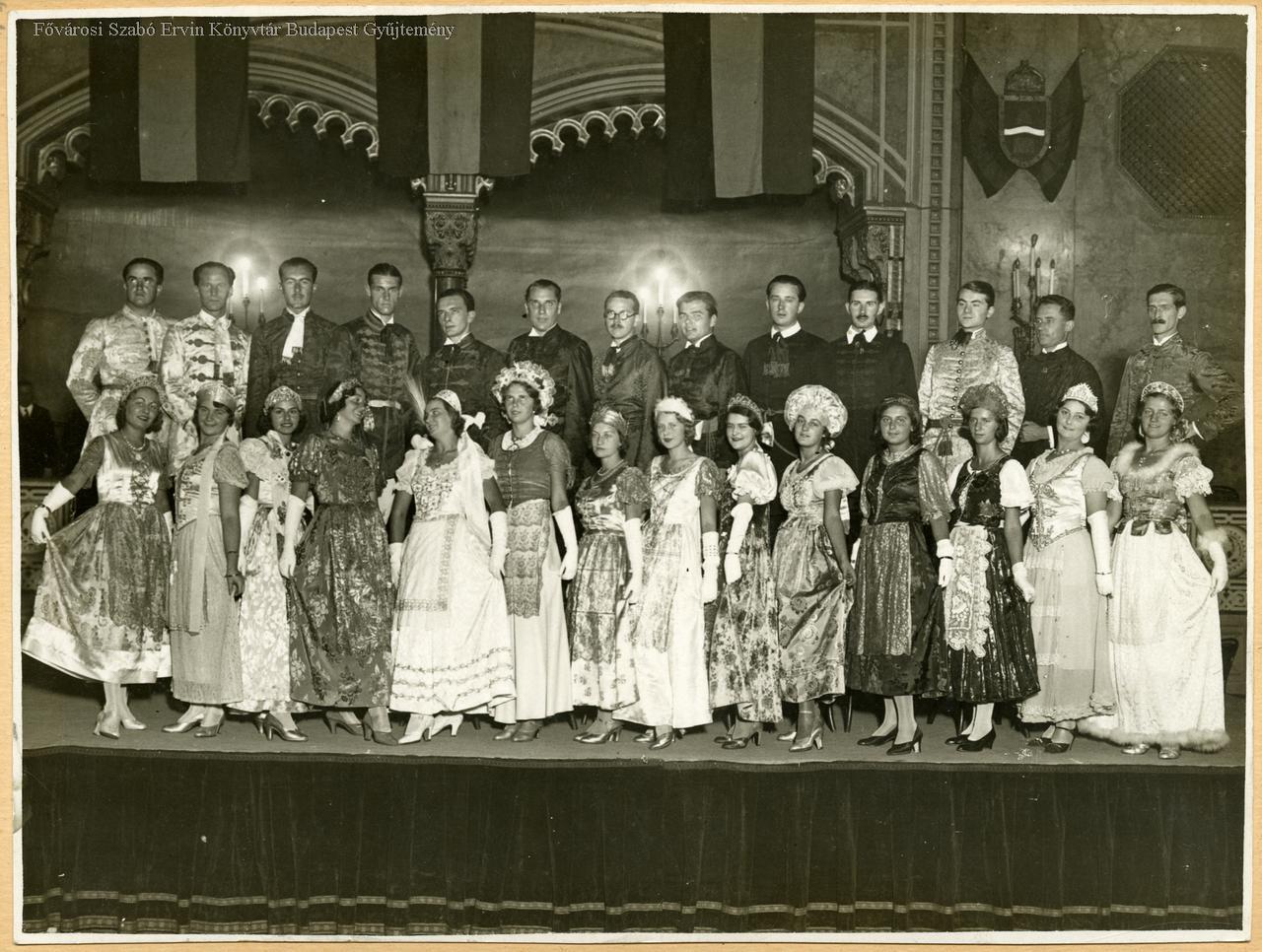 bál, felső osztály, középosztály, jogász, diákélet, társasági élet, nő, férfi, ifjúság, ünneplőruha, estélyi ruha, farsang, csoportkép, 1934