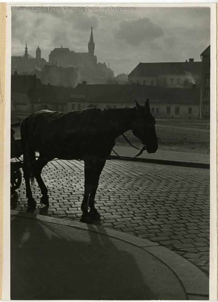 utca, ló, lovas kocsi, kőburkolat, lakóépület, 1938