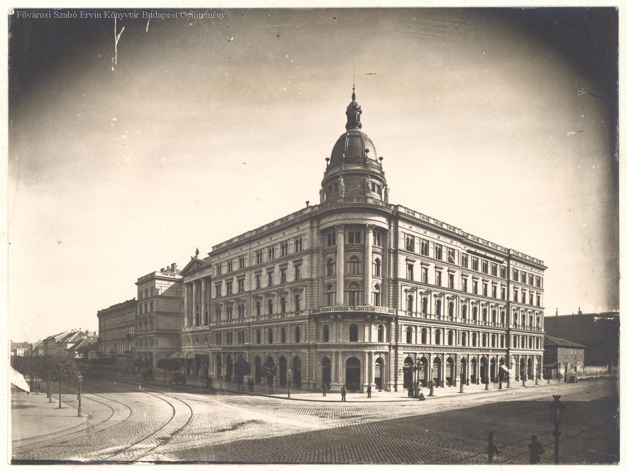[A régi Nemzeti Színház bérháza és a színház épülete kilátással a Rákóczi útra]
