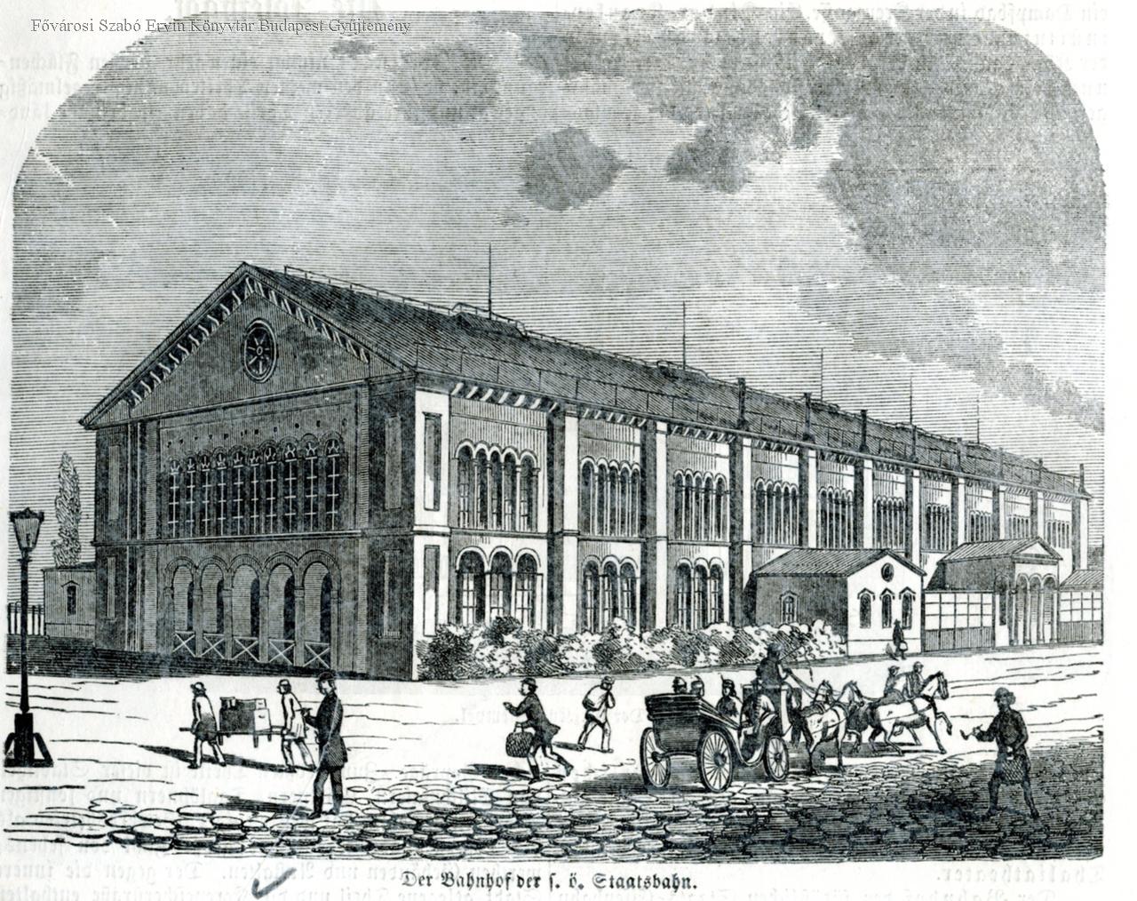 vasúti közlekedés, pályaudvar, épületkép, 1866