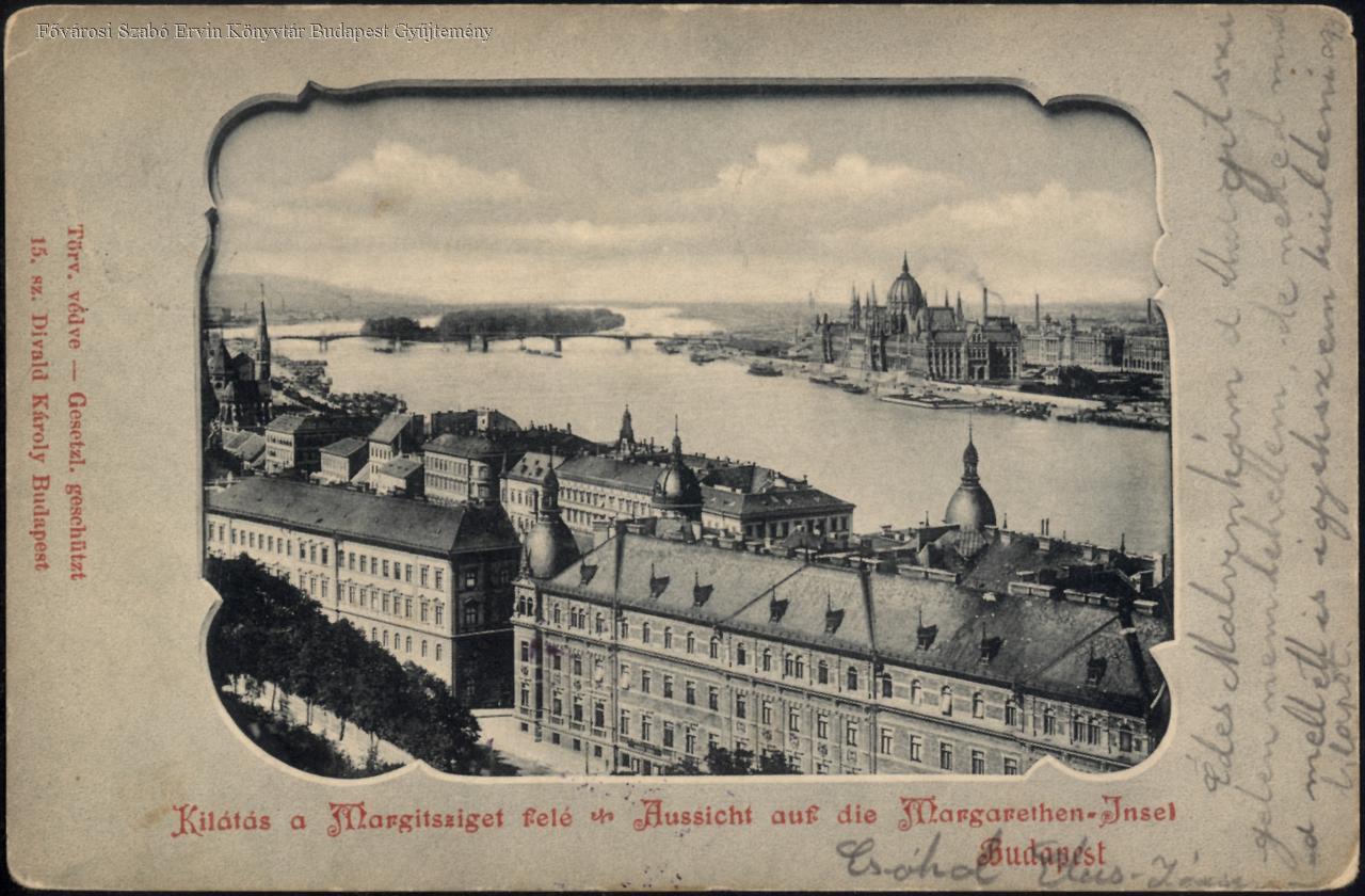 Kilátás a Margitsziget felé Aussicht auf die Margarethen Insel /