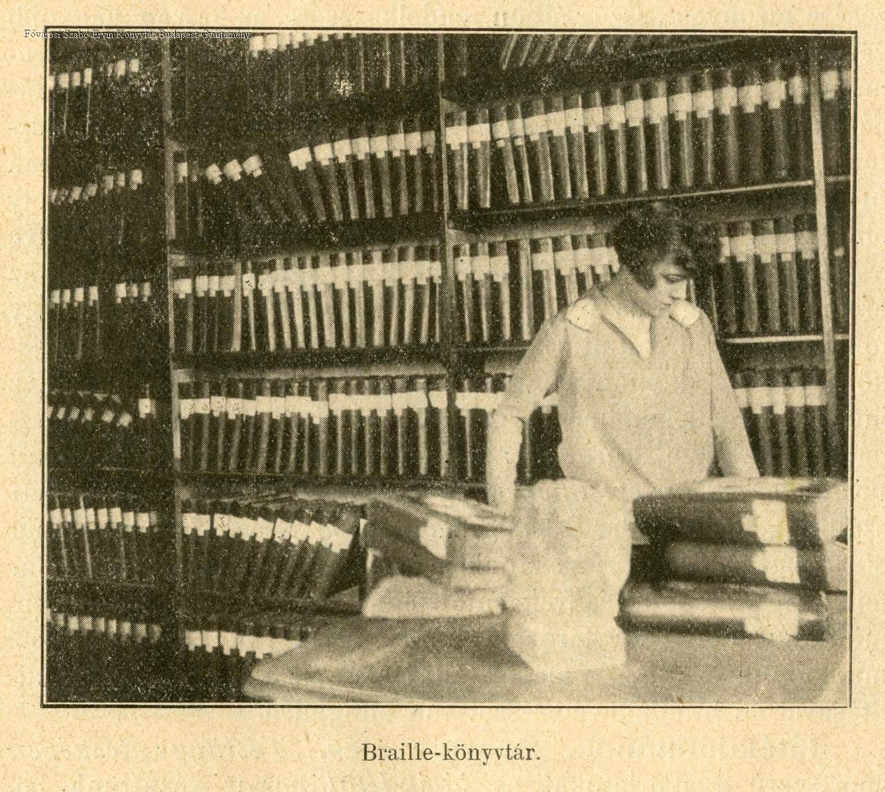 gyógypedagógiai iskola, vakok és gyengénlátók iskolája, vak, csökkent látású, vakírás, könyvtár, nő, jelenetkép, 1926
