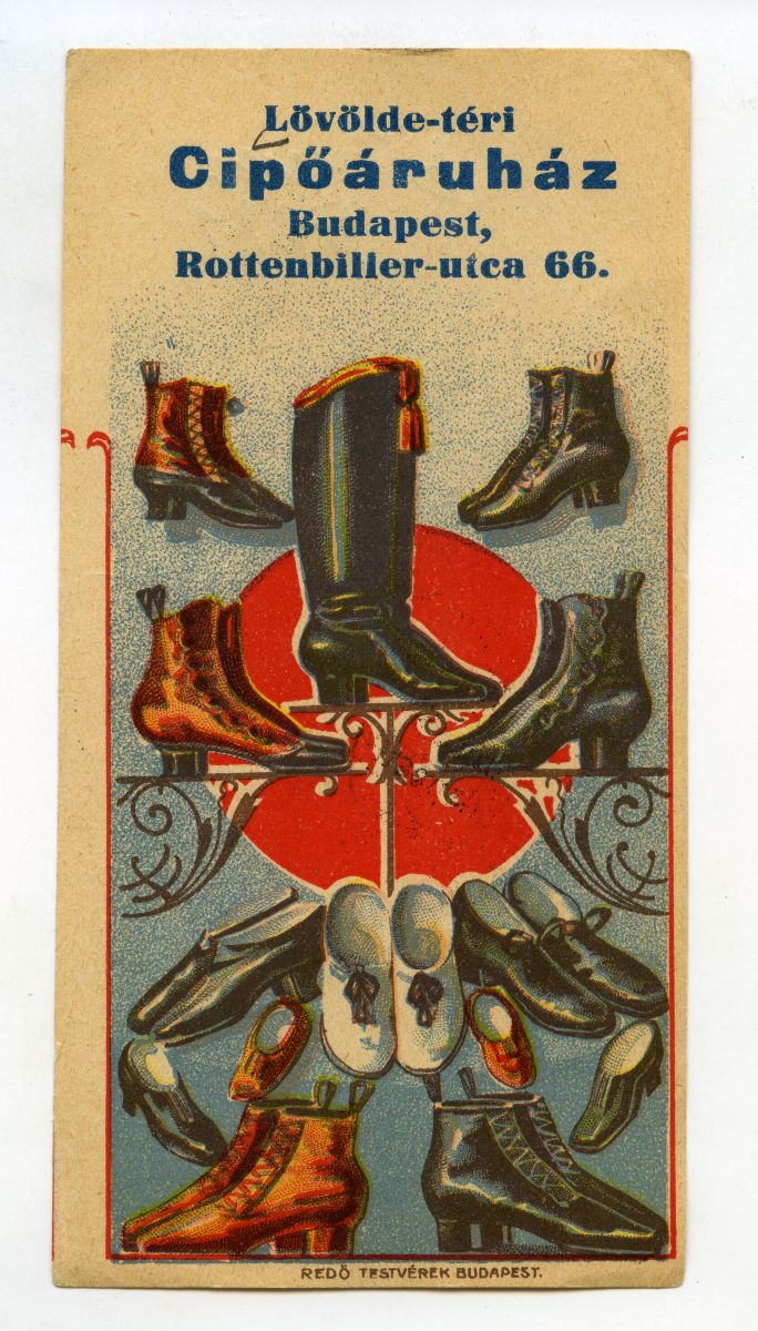 lábbeli, cipő, csizma, cipész, üzlet, nő, férfi, gyerek, reklámnyomtatvány, kisnyomtatvány, aprónyomtatvány, számolócédula