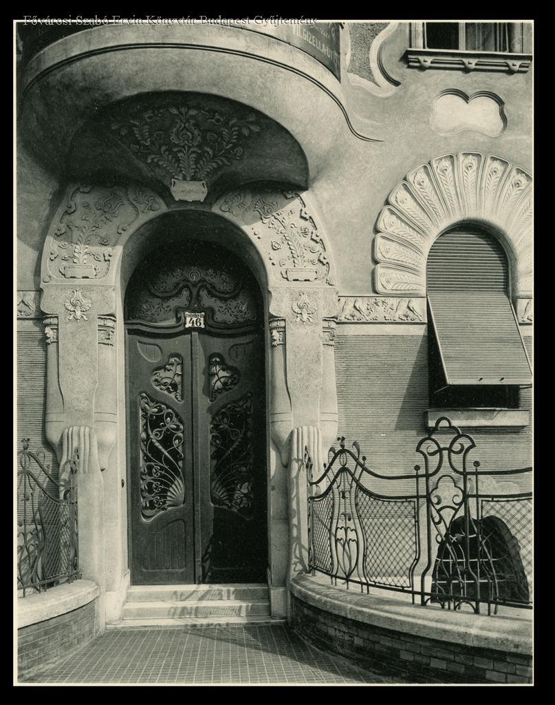 bérház, lakóépület, szecesszió, díszítés, kapu, kerítés, házszámtábla, épületkép, külső felvétel, 1907-1910 között