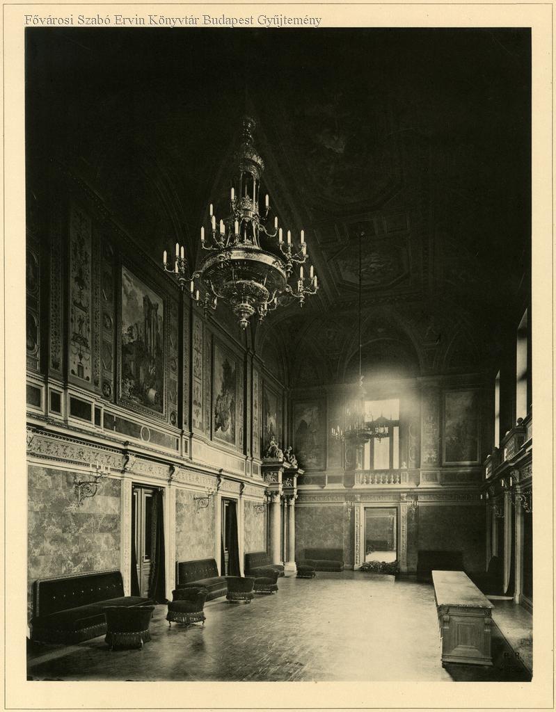 színház, előcsarnok, csillár, falfestmény, bútor, épületkép, belső felvétel, 1889