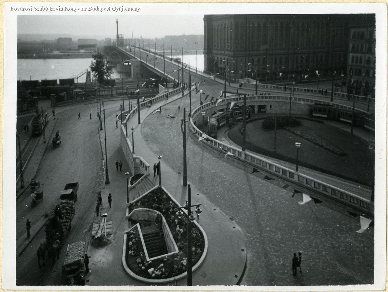 A háttérben a tengerészeti emlékműnél még látszik az állvány, zászlókkal díszítették a teret és a hidat, az aszfaltúton még szinte nincs guminyom, ezért valószínűsíthető, hogy az avatás előtti napokban készülhetett a felvétel.