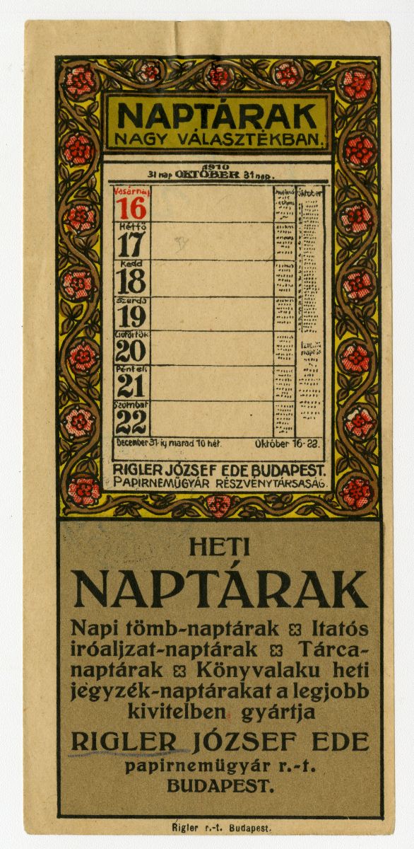papír, naptár, füzet, könyv, 1910, reklámnyomtatvány, kisnyomtatvány, aprónyomtatvány, számolócédula