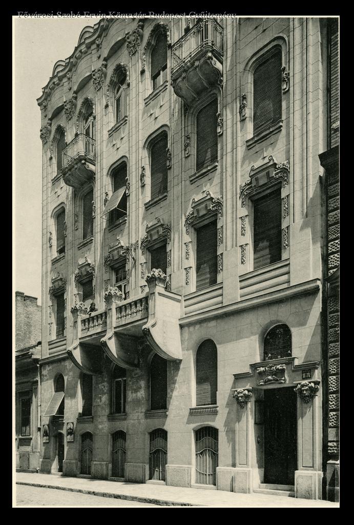 bérház, lakóépület, szecesszió, díszítés, erkély, kapu, házszámtábla, cégtábla, italbolt, épületkép, külső felvétel, 1906-as évek