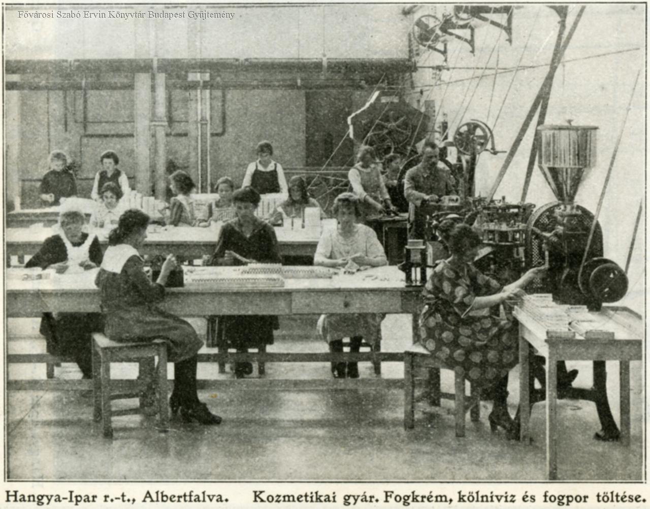 A Hangya-Ipar Rt. albertfalvai kozmetikai gyára Fogkrém, kölnivíz és fogpor töltése