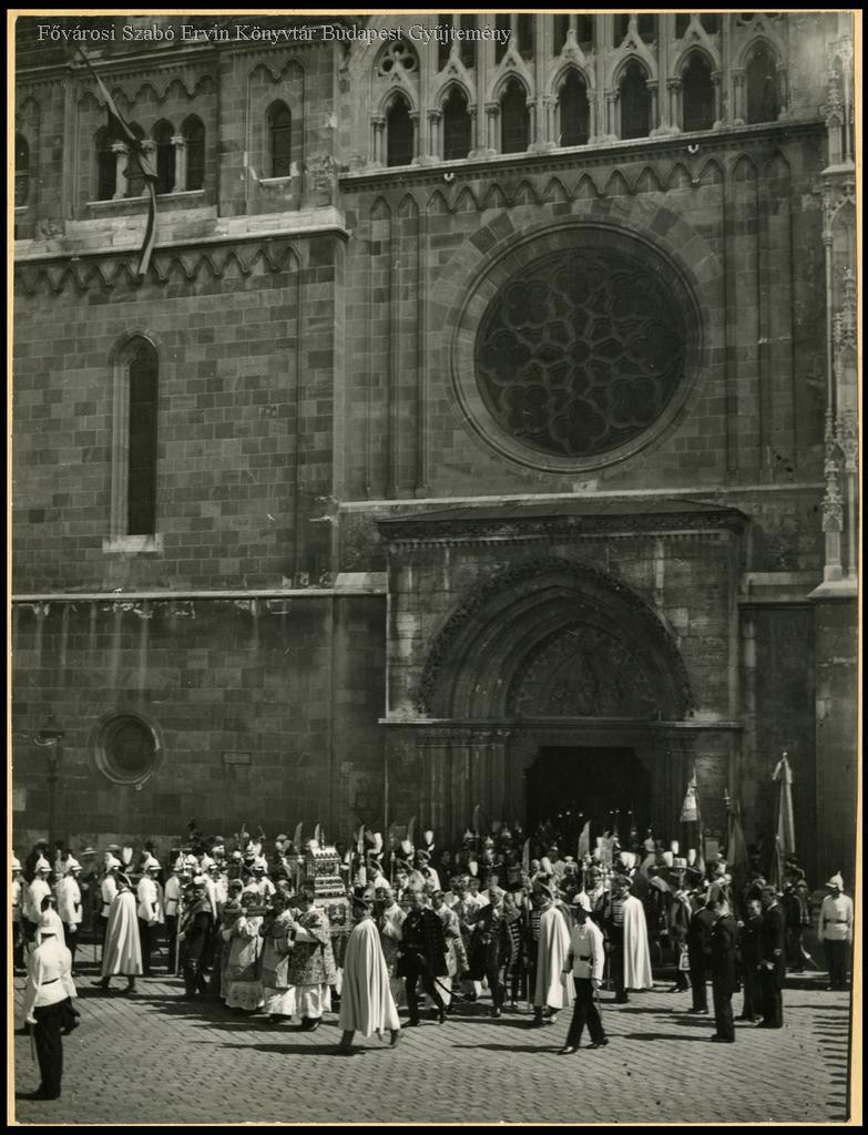 [A Szent Jobbot az ünnepi mise után visszaviszik a koronázási főtemplomból a Zsigmond-kápolnába 1939. augusztus 20-án]