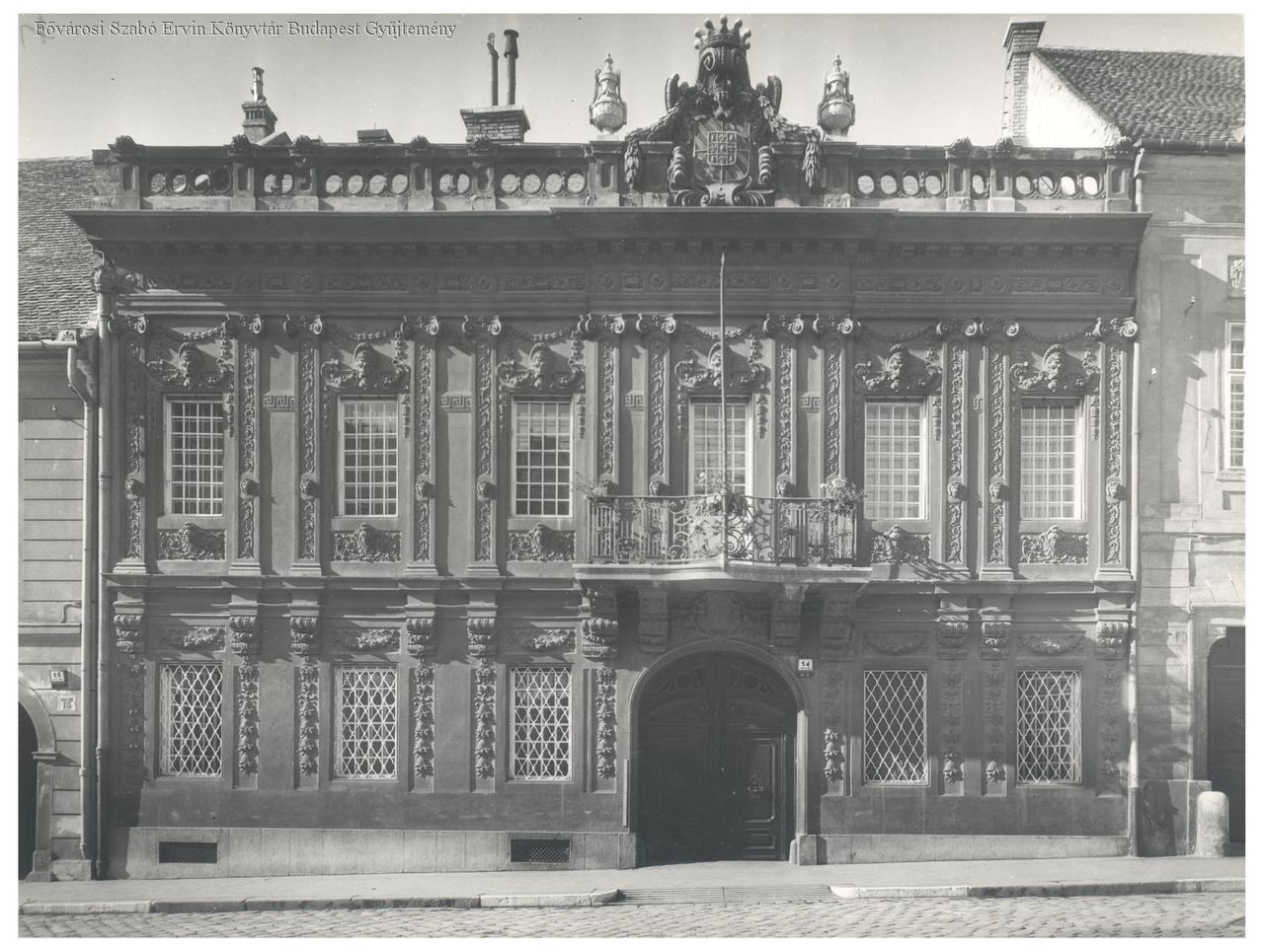 lakóépület, palota, épületdíszítés, neoreneszánsz, copf stílus, erkély, címer, épületfotó, külső felvétel, 1941, 1942