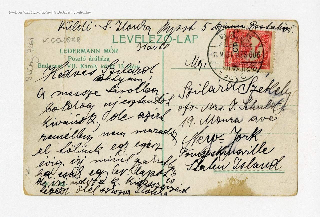 Ledermann Mór Posztó árúháza Budapest, VII. Károly körút 13 szám : levelezö-lap