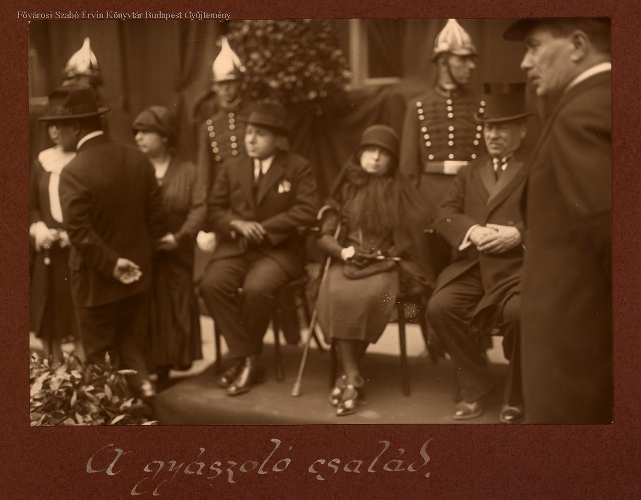 Vázsonyi Vilmos temetése 1926-ban. A gyászoló család tagjai között az özvegy, Szalkay Margit, és a fiú, Vázsonyi János.
