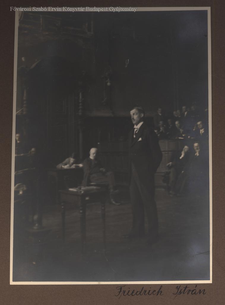 Friedrich István 1918-ban a Károlyi-kormányban hadügyi államtitkár, 1919. augusztus 7-étől november 25-éig miniszterelnök, majd 1920. március 15-éig hadügyminiszter). A bíróság az ejtette a az ellene felhozott vádat.