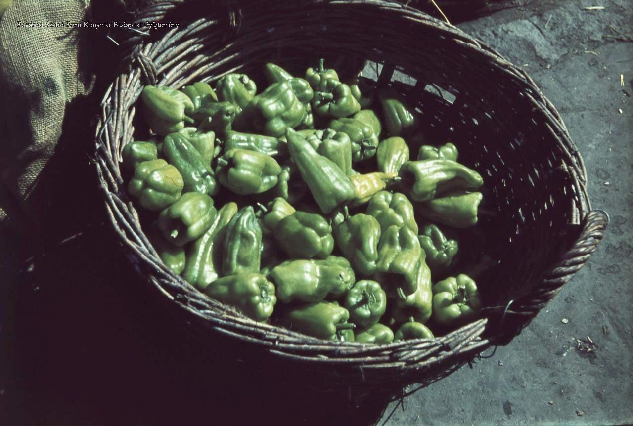 csendélet, piac, zöldség, paprika, áru, kosár, 1937-1944