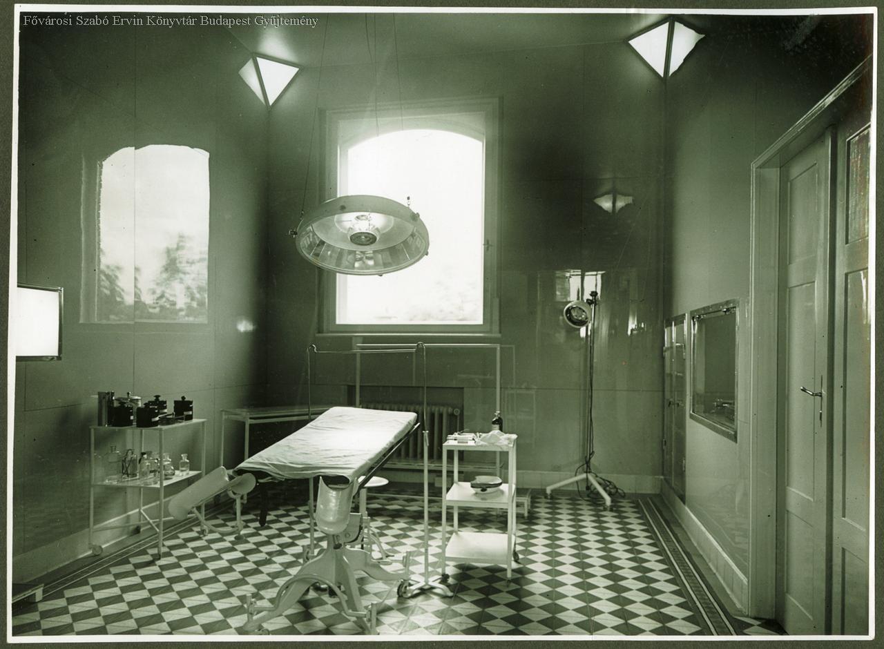 szülészet, nőgyógyászat, kórház, alapítvány, jótékonyság, szociális intézmény, zsidóság, orvosi berendezés, orvosi műszer, lámpa, mosdókagyló, tükör, lámpa, jelenetkép, belső felvétel, 1941
