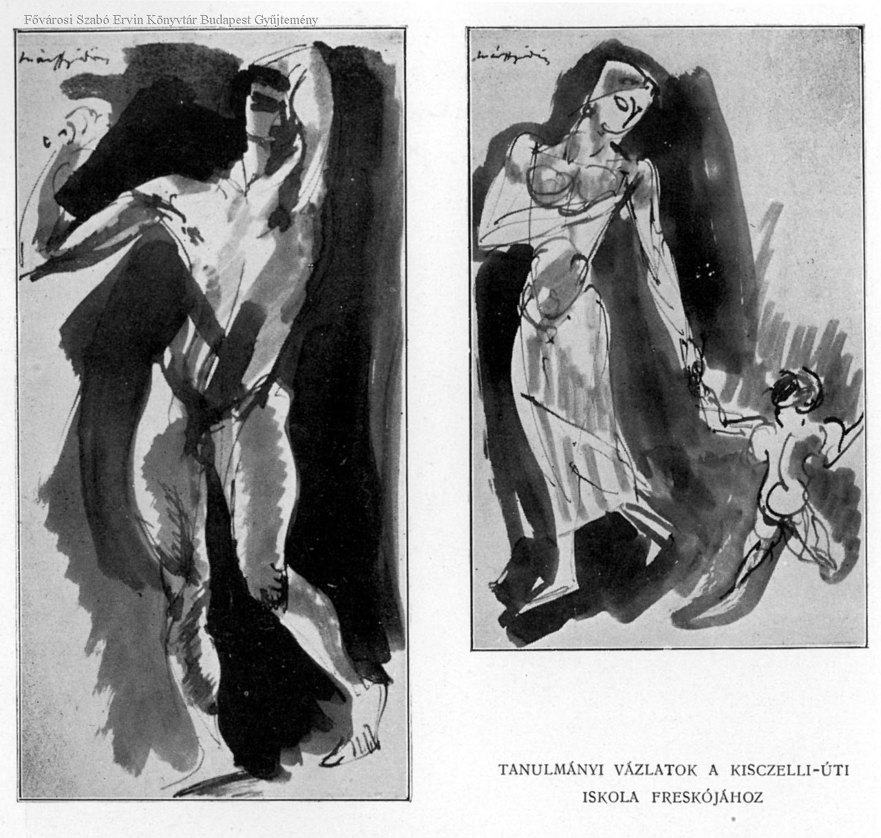 Tanulmányi vázlatok a Kiscelli úti iskola freskójához Márffy Ödön /