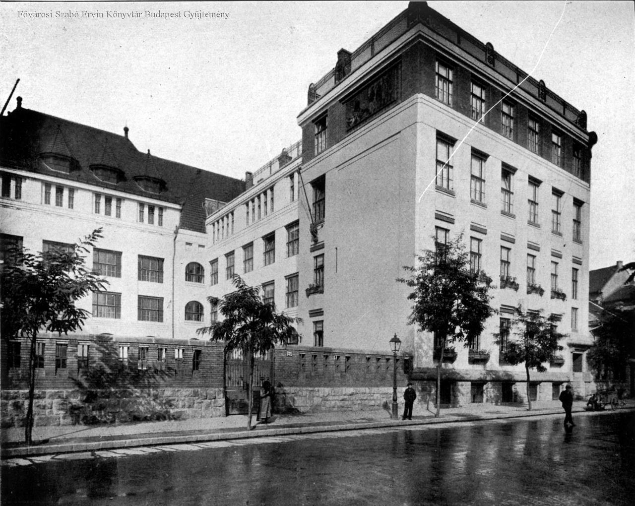 elemi iskola, épületkép, homlokzat, udvar, külső felvétel, 1913