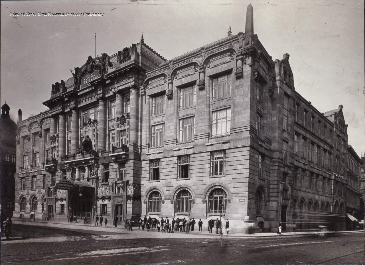 Épülethomlokzat a sarok felől. Szecessziós domborművek, oromzati díszek. A bejárat fölött a későbbi névadó, Liszt Ferenc ülő alakja, kétoldalt Erkelt és Volkmann Róbertet ábázoló domborművek. Csoportba rendeződött járókelők. Kövezett út, villamospálya