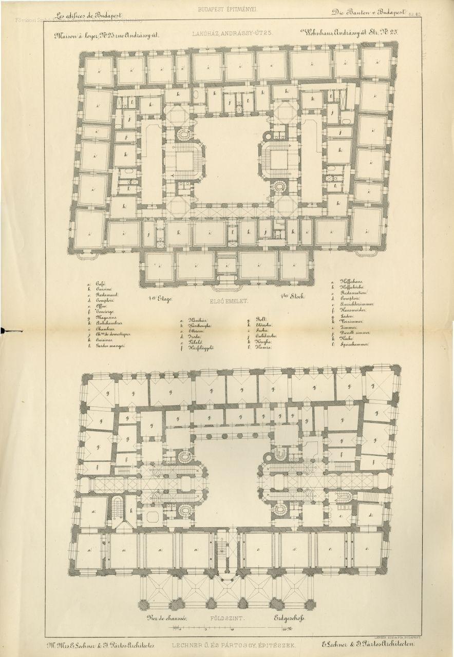 Lakóház, Andrássy-út 25. Lechner Ö. és Pártos Gy. építészek : első emelet Maison à loyer, no. 25. rue Andrássy-út. : M. Mrs. E. Lechner & J. Pártos Architectes = Wohnhaus, Andrássy-út Str. No 25. : E. Lechner & J. Pártos Architecten