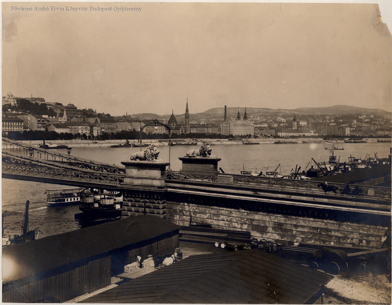 [Vízivárosi látkép, a Lánchíd részletével Pest felől]