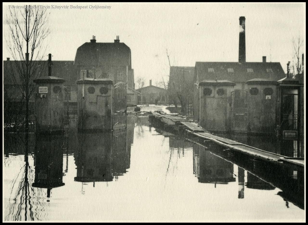 árvíz, tél, gyár, ipari épület, gyárkémény, 1941