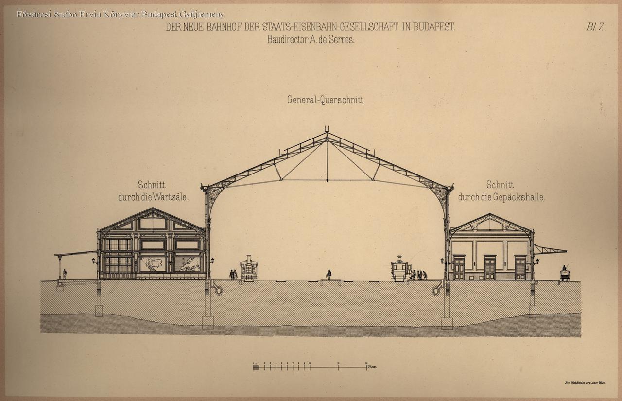 Der neue Bahnhof der Staats-eisenbahn Gesellschaft in Budapest : Baudirector A. de Serres General-Querschnitt /
