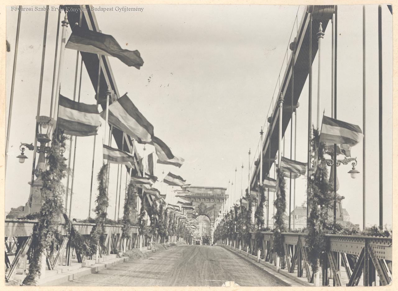 híd, virág, díszítés, ünnep, zászló, sajtófotó, 1920-as évek