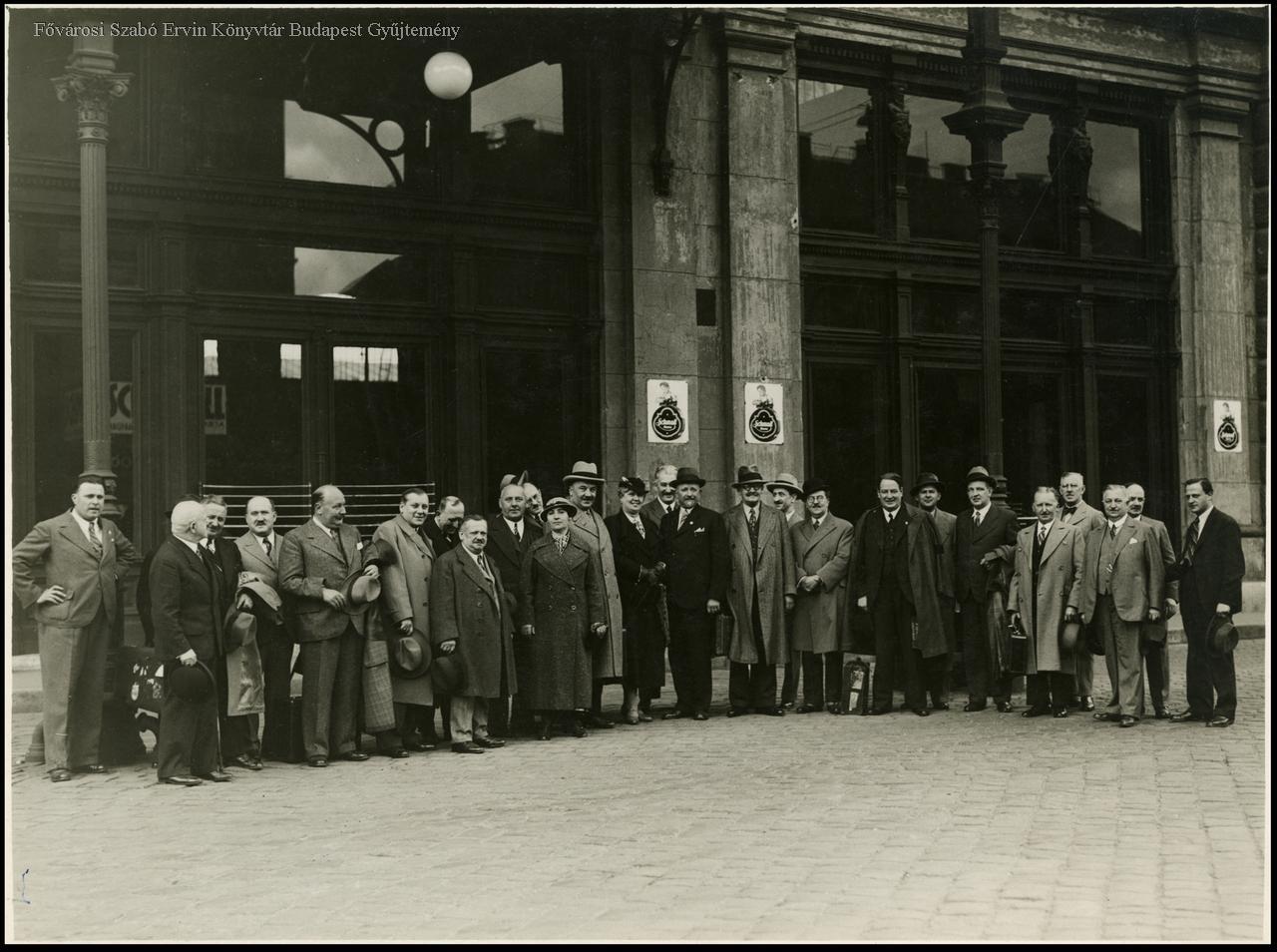 pályaudvar, bejárat, osztrákok, cukrászat, férfi, nő, ruházat, csoportkép, 1936