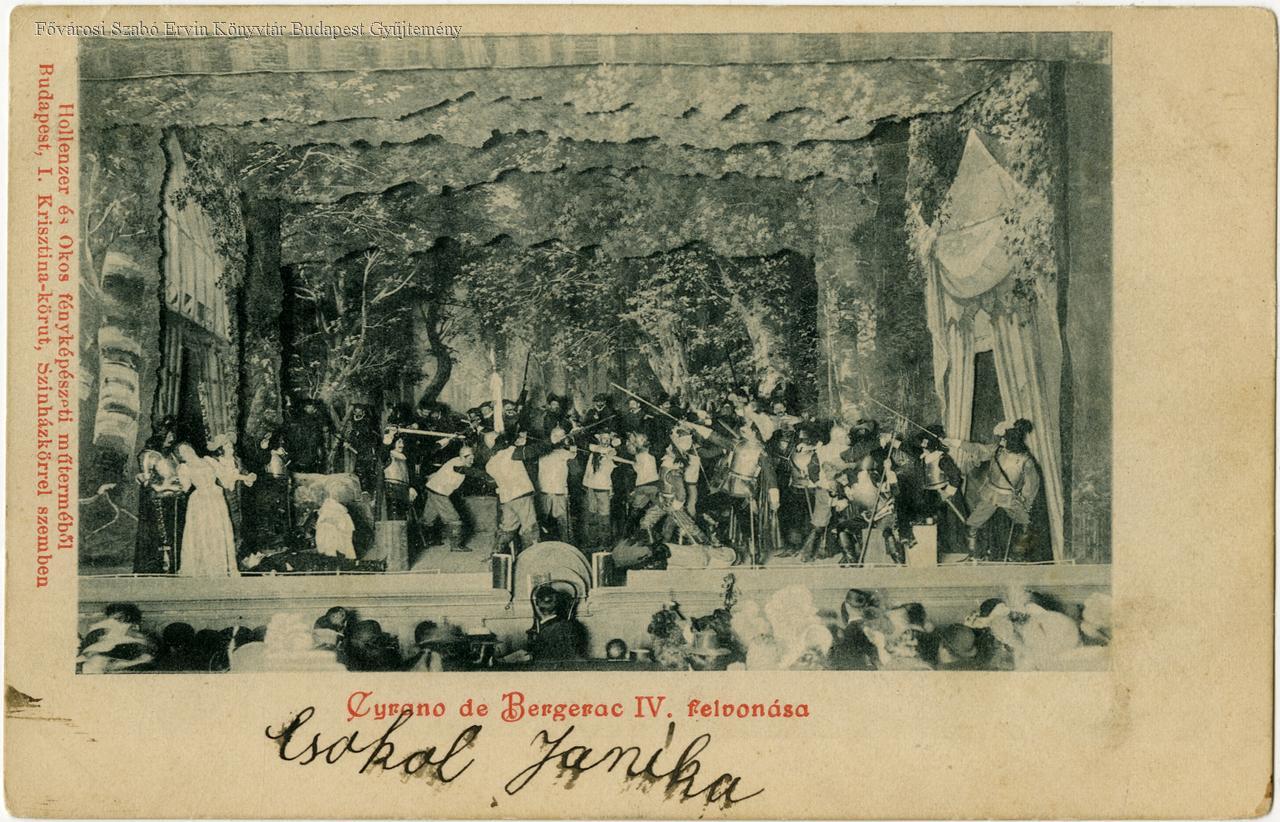 képes levelezőlap, színielőadás, színház, belső felvétel, jelenetkép, díszlet, színész, 1900-as évek