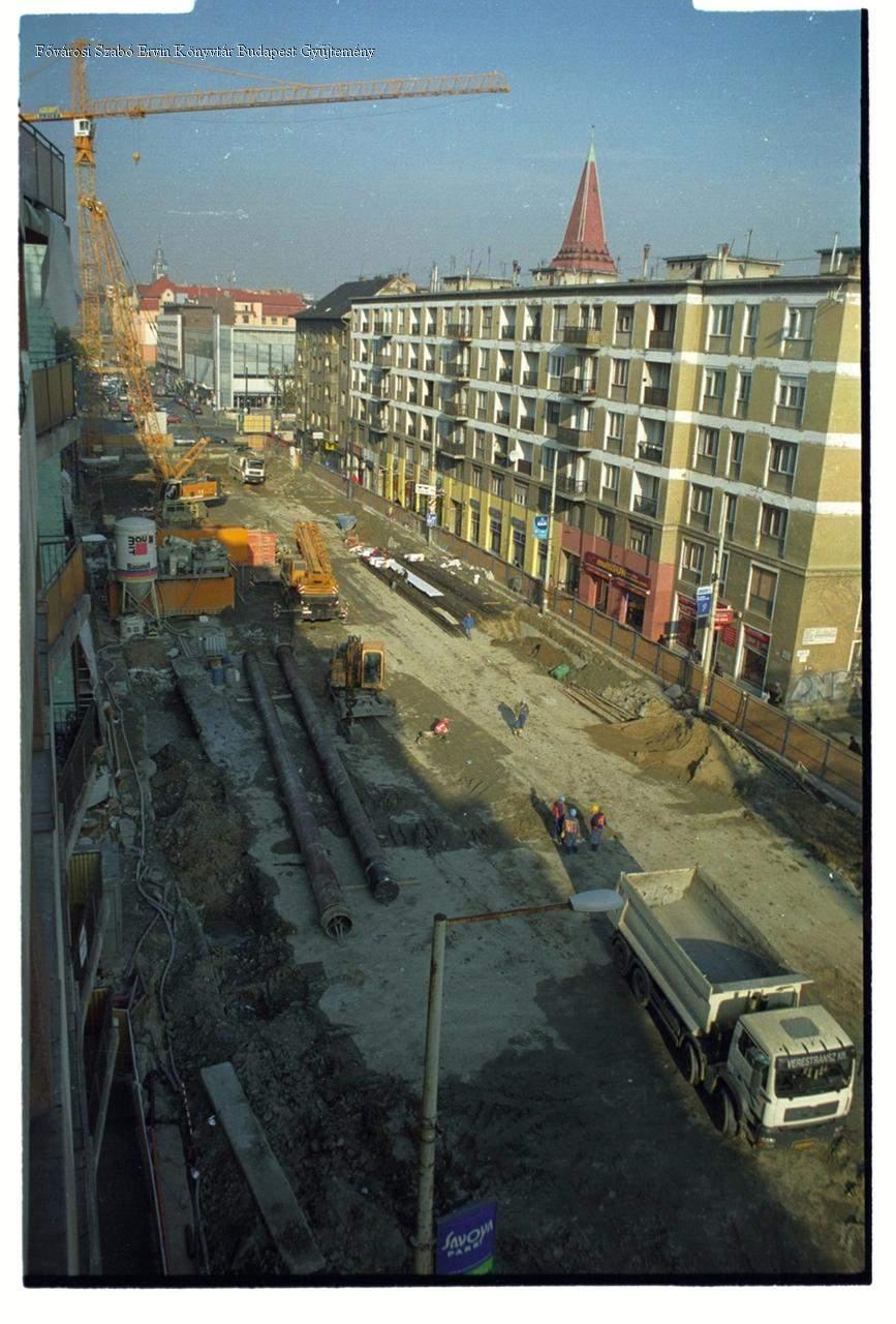 külső felvétel, épületkép, utcakép, metróállomás, építés, daru, munkagép, 2000-es évek