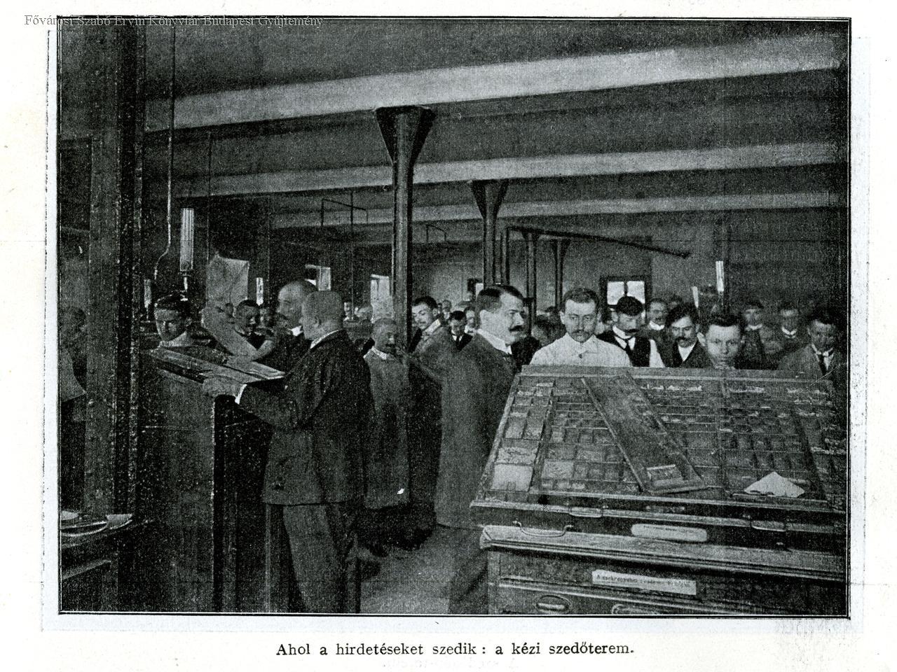 nyomdaipar, szedőgép, férfi, munkavégzés, belső felvétel, 1908