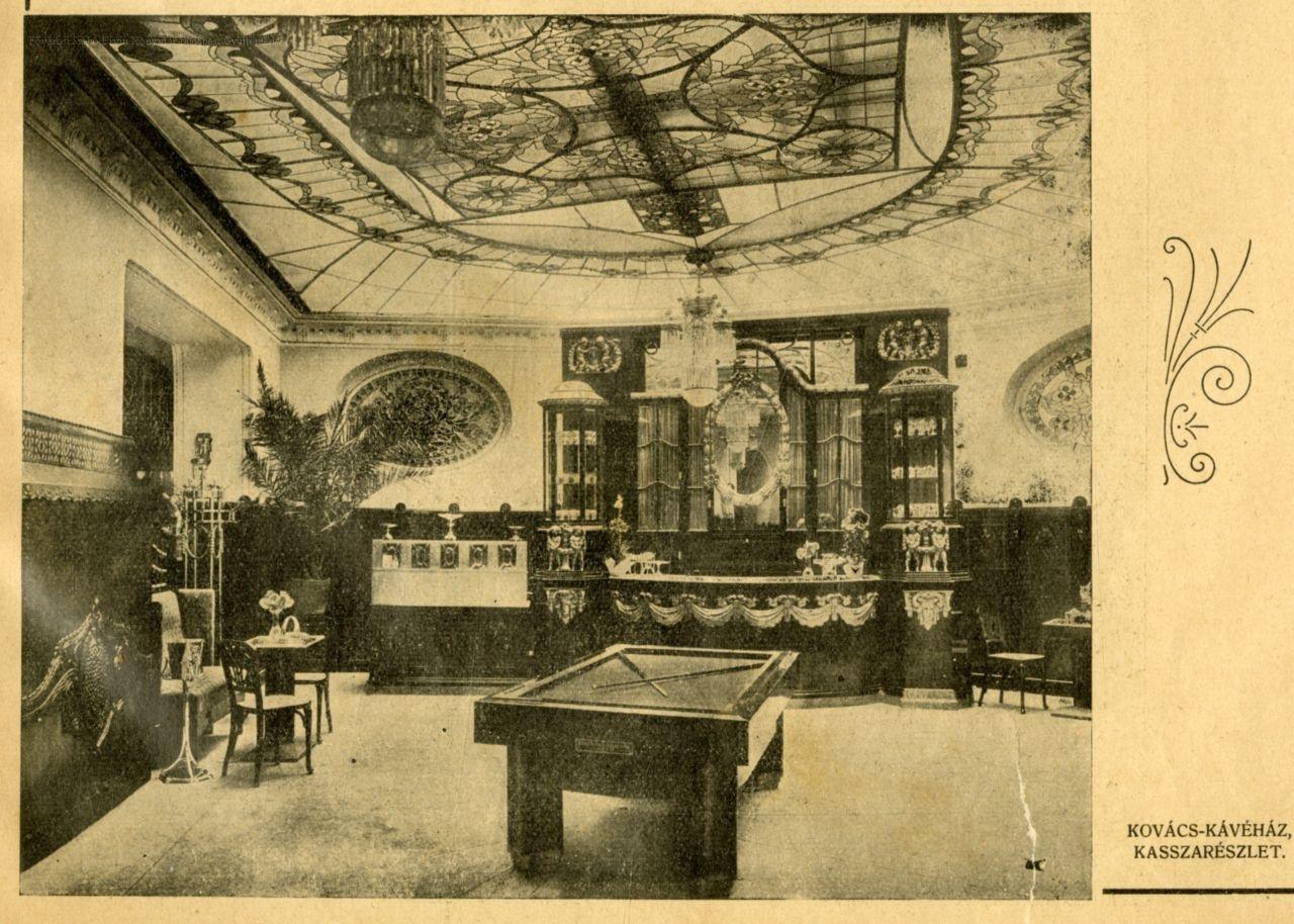 kávéház, ülőbútor, díszüveg, biliárd, szecesszió, belső felvétel, 1910-es évek