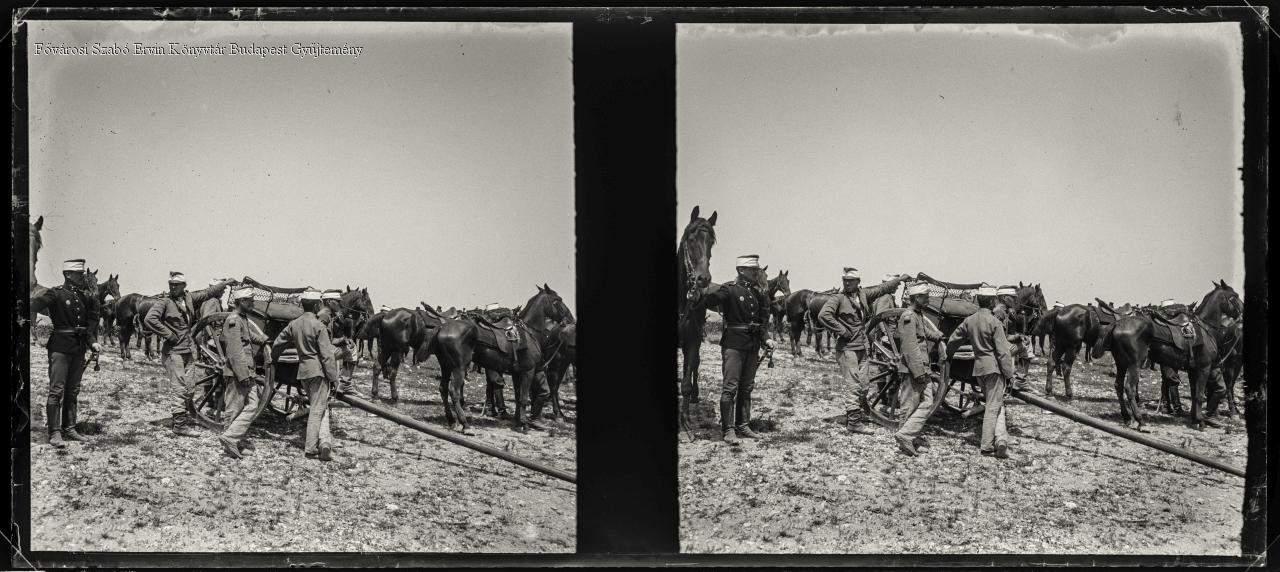 katona, hadászat, hadgyakorlat, egyenruha, ló, férfi, távcső, kocsi, életkép