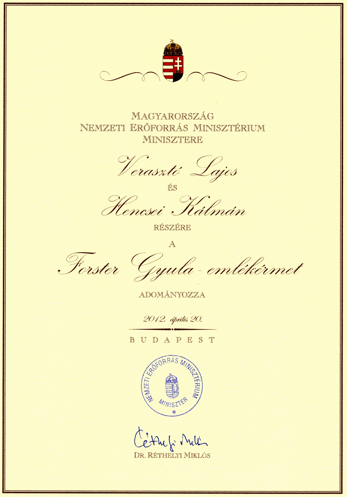 A bejárati folyosó falát méltán díszíti a Podmaniczky díj amelyet a Város és Faluvédők Szövetsége adományoz mindazon közösségeknek illetve magánszemélyeknek akik legtöbbet tettek épített és természeti környezetünk kulturális örökségünk értékének megismertetése és védelme érdekében és a Forster Gyula emlékérem, melyet a műemlékvédelem érdekében szerzett jelentős érdemekért adományoznak magánszemélyeknek.