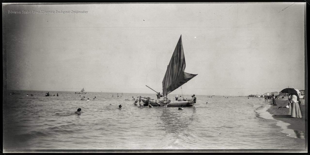 vitorlás hajó, strand, külső felvétel, tenger, tengeri fürdő, fürdőzés, napozás, ember, napernyő, épület