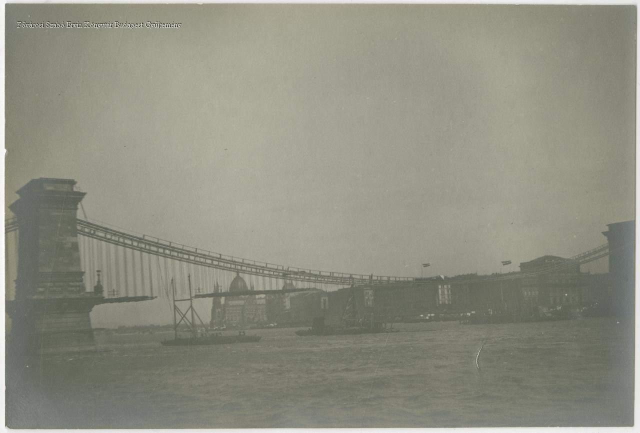A Lánchíd átépítése, vasszerkezetének megerősítése. Teljes rekonstrukció: 1914. február 3-tól 1915. november 26-ig.