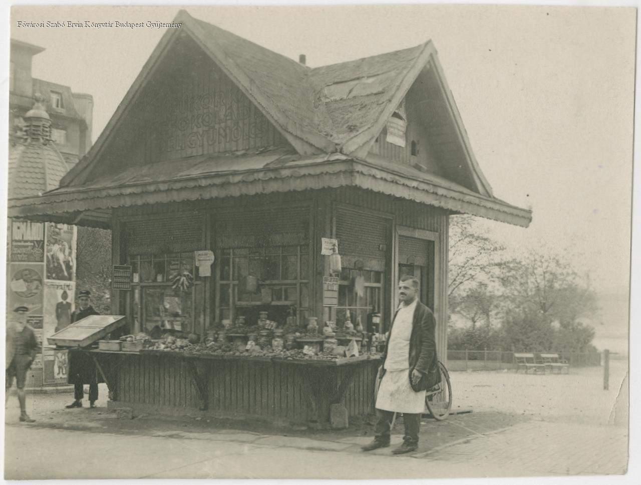 Az építmény felirata szerint gyümölcsöt, cukorkát, csokoládét árusító építmény a hídfő déli oldalán, a parkban