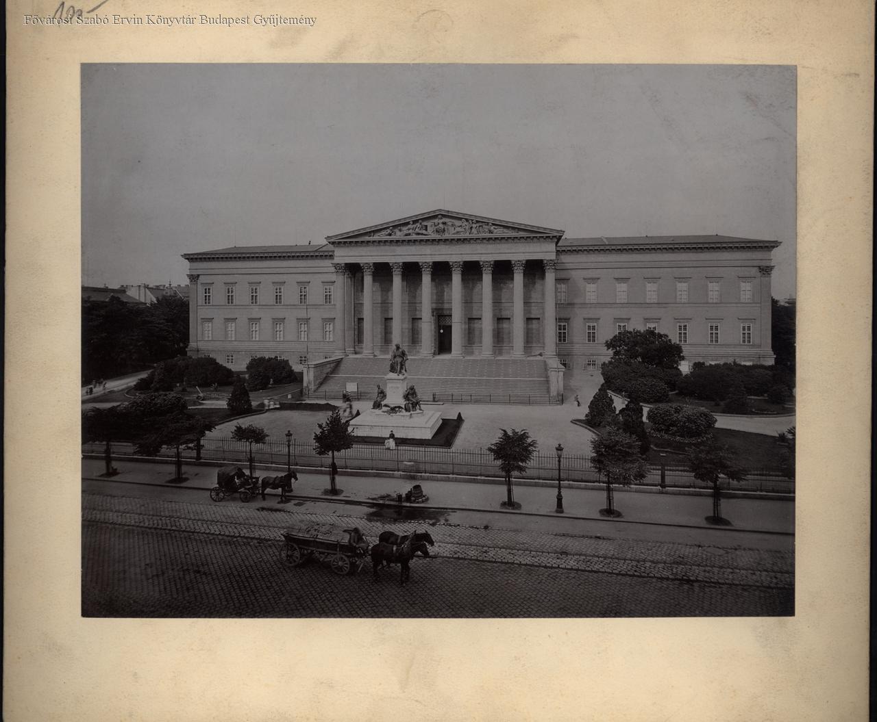 múzeum, klasszicizmus, szobor, park, fiáker, lovas kocsi, épületkép, külső felvétel, 1897 körül