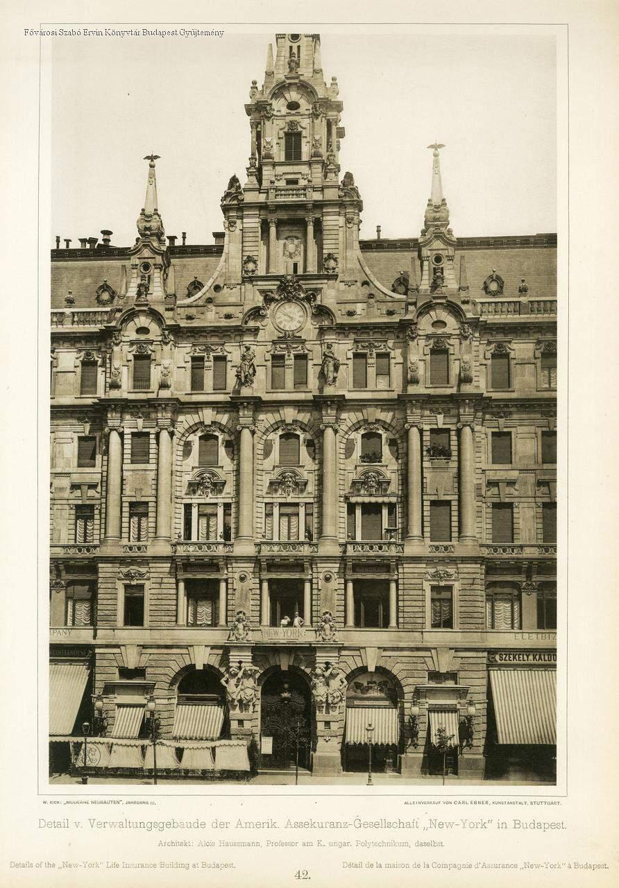 Detail v. Verwaltungsgebäude der Amerik. Assekuranz-Gesellschaft "New-York" in Budapest Details of the "New-York" Life Insurance Building at Budapest = Détail de la maison de la Compagnie d'Assurance "New-York" à Budapest : Architekt: Alois Hausmann, Professor am K. ungar. Polytechnikum, daselbst