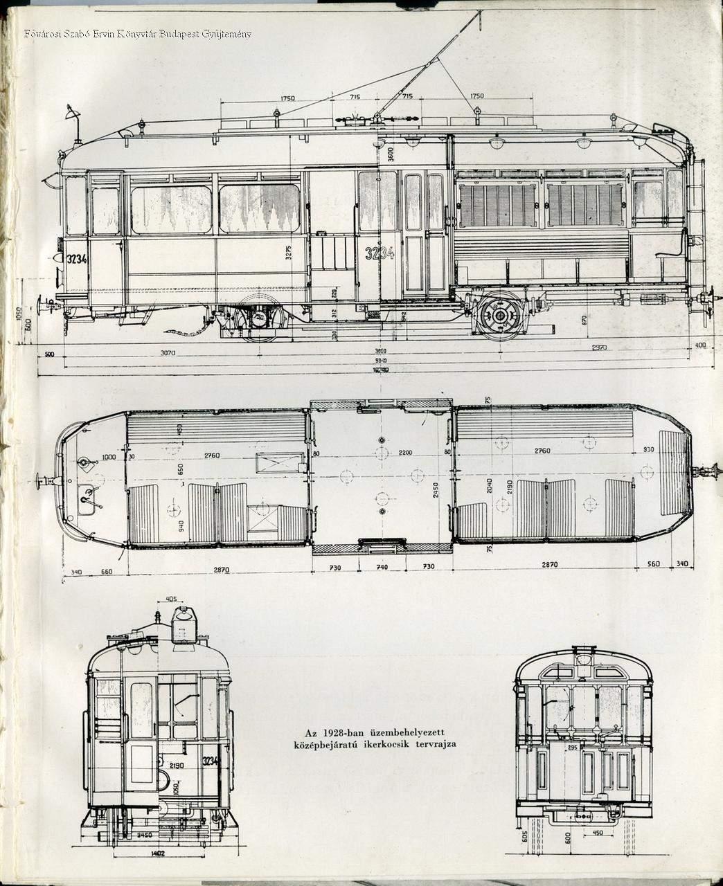 közúti villamos közlekedés, villamos kocsi, jármű, tervrajz, 1934