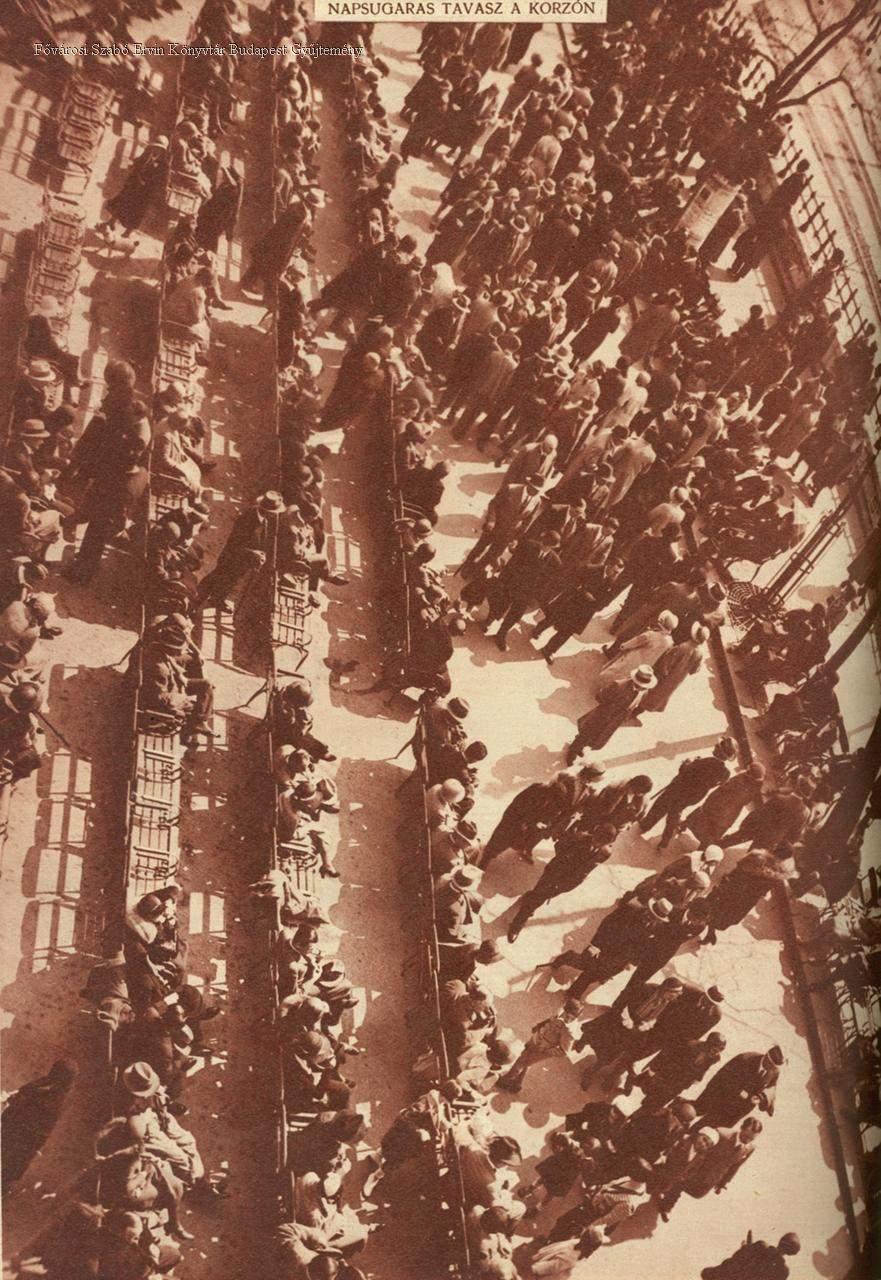 utcakép, korzó, néptömeg, napozás, társasági élet, tavasz, 1931