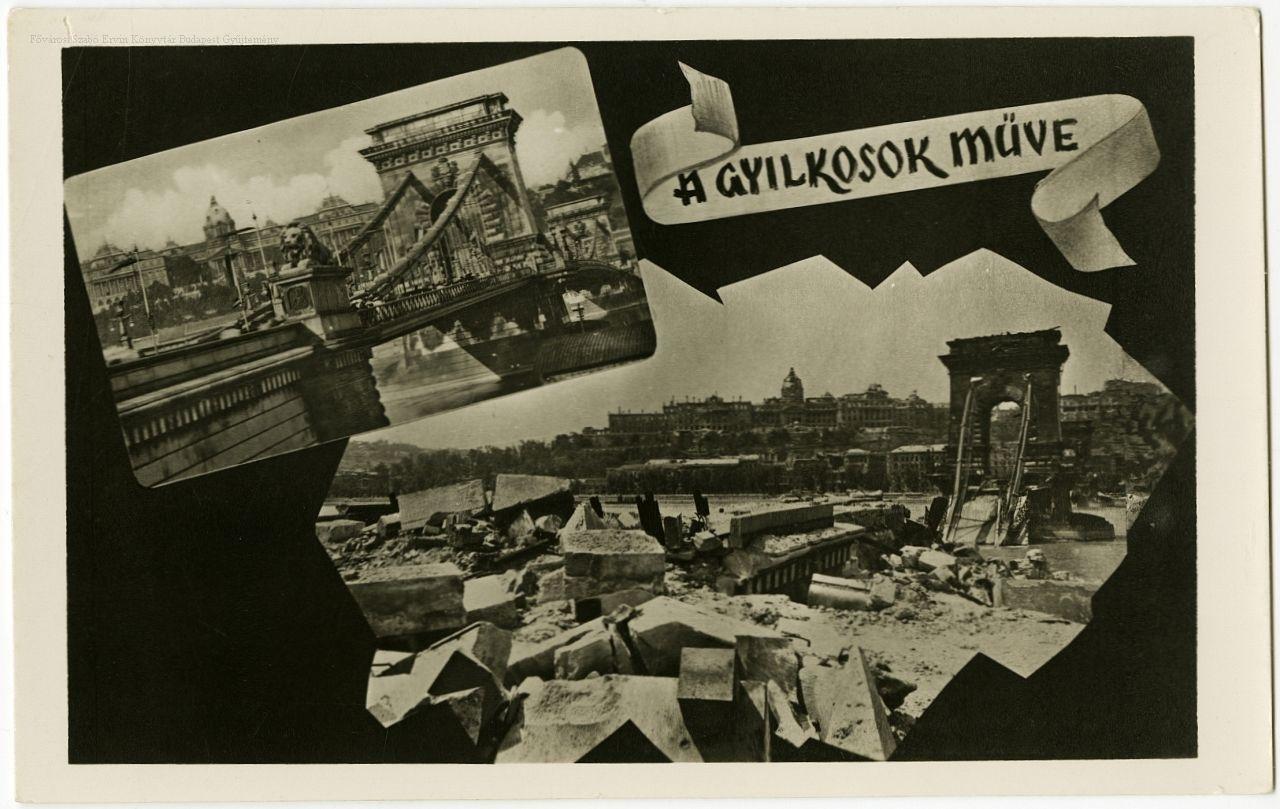 Kiadási adat a képeslapon: A Magyar Ujjáépítési Minisztérium engedélyével kiadja a Magyar Központi Híradó R.-T. fényképsokszorosító üzeme