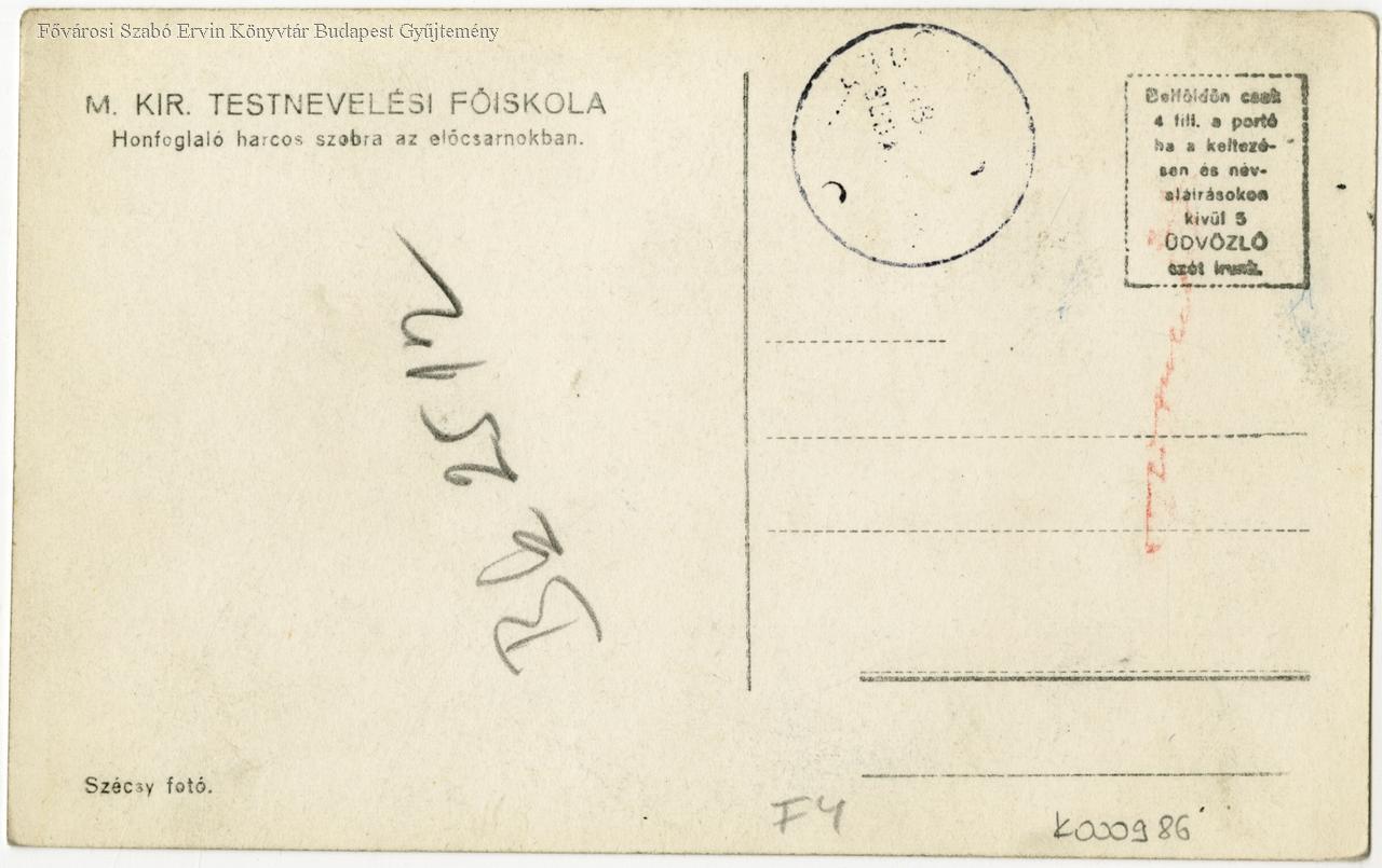 főiskola, testnevelés, sport, pedagógusképzés, előcsarnok, épületkép, belső felvétel, szobor, képes levelezőlap, 1920-as évek, 1930-as évek, két világháború közötti időszak