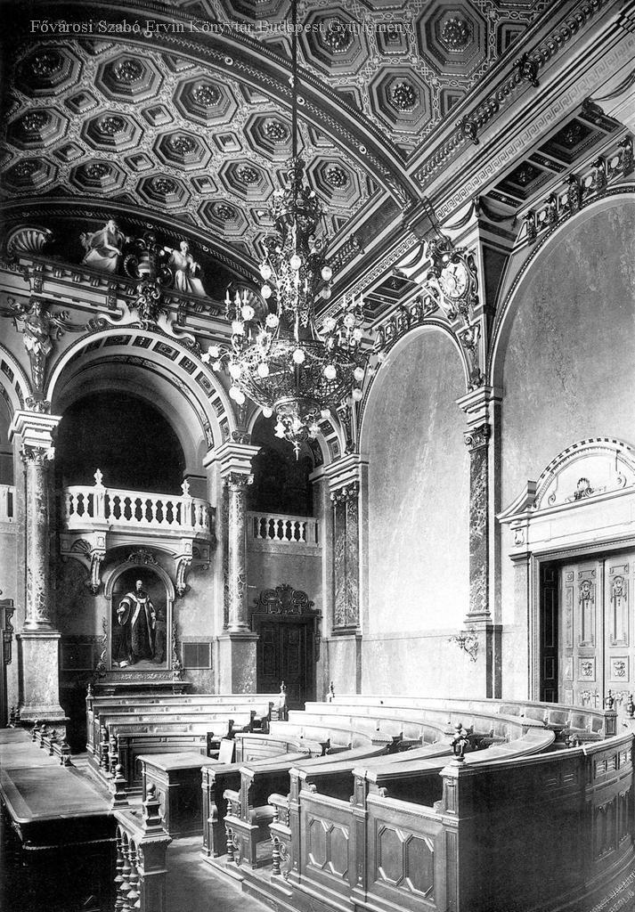 székház, bíróság, bútor, festmény, épületkép, belső felvétel, 1897