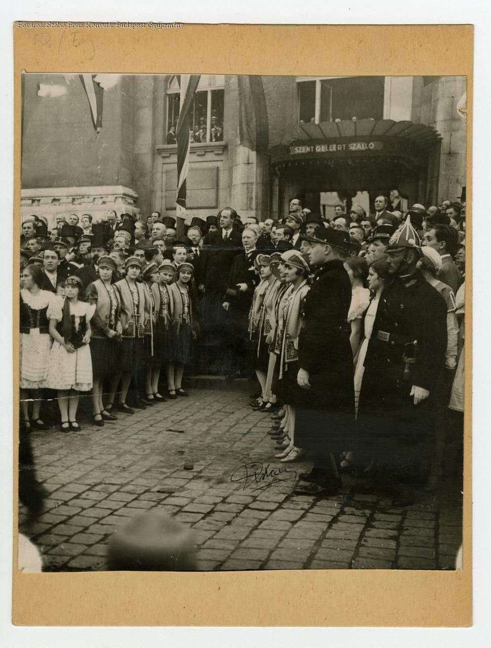 [Esmond Harmsworth fogadtatása Budapesten a Gellért szálló előtt]