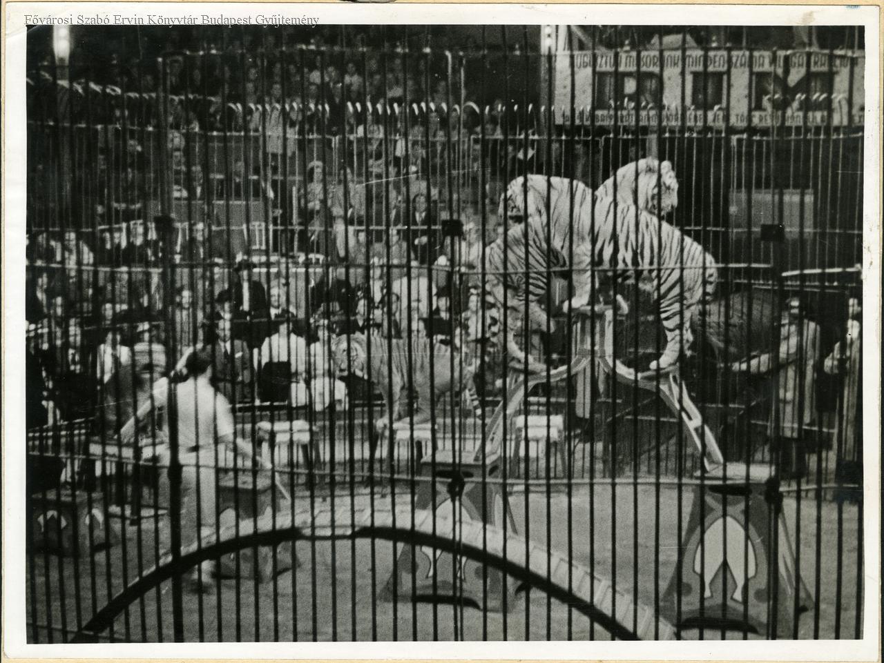cirkuszi előadás, tigris, idomár, nézőtér, közönség, 1941